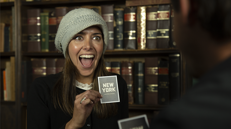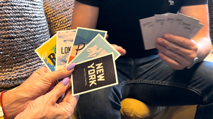 In the first phase, the spectator chooses their favorite city and separates the corresponding postcard. The illusionist asks them to imagine themselves in that city and then proceeds to describe in detail the city they are thinking of.
