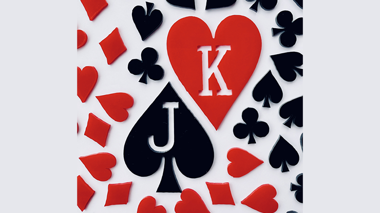 Effect 1: A spectator freely selects a card. The magician places a blank card and some suit fragments into a card box, gives it a shake, and the blank card transforms into the spectator's chosen card.