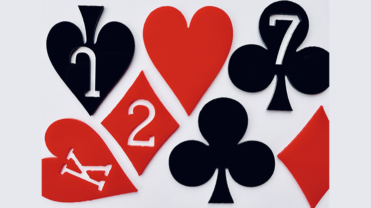 Effect 2: Four blank cards are shown. A suit fragment is placed under each one. As the four suit fragments vanish, they reappear forming a "4" on the final blank card.