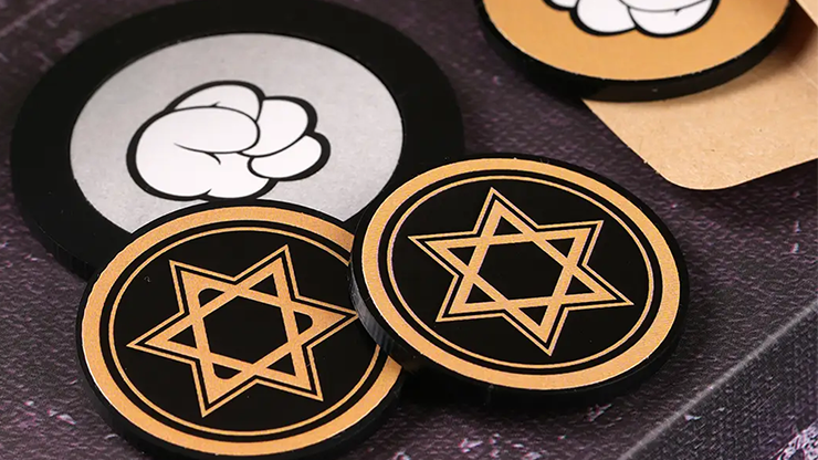 The magician then opens the prediction envelope and reveals a token inside. When compared, the symbol on this predicted token is found to completely defeat the symbol chosen by the spectator-just like in the classic game of Rock-Paper-Scissors!